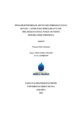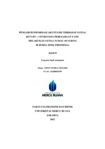 NINGSIH, PIPIT FITRIANA (2012) PENGARUH INFORMASI AKUNTANSI TERHADAP INITIAL RETURN: (STUDI PADA PERUSAHAAN YANG MELAKUKAN INITIAL PUBLIC OFFERING DI BURSA EFEK INDONESIA). S1 thesis, Universitas Mercu Buana Jakarta.