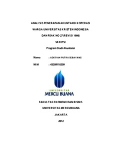SEBAYANG, ADISYAH PUTRA (2012) ANALISIS PENERAPAN AKUNTANSI KOPERASI WARGA UNIVERSITAS KRISTEN INDONESIA DAN PSAK NO. 27 (REVISI 1998). S1 thesis, Universitas Mercu Buana Jakarta.