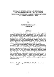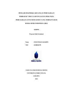 SABARINI, NUR ENDAH (2012) PENGARUH KINERJA KEUANGAN PERUSAHAAN TERHADAP PRICE EARNING RATIO (PER) PADA PERUSAHAAN CONSUMER GOODS YANG TERDAFTAR DI BURSA EFEK INDONESIA (BEI). S1 thesis, Universitas Mercu Buana Jakarta.