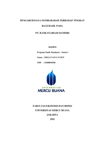 YUSUF, DELLI YANA (2012) PENGARUH DANA MUDHARABAH TERHADAP TINGKAT BAGI HASIL PADA PT. BANK SYARIAH MANDIRI. S1 thesis, Universitas Mercu Buana Jakarta.