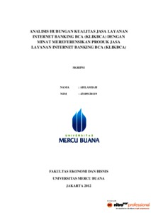 AHLAMIAH, AHLAMIAH (2012) ANALISIS HUBUNGAN KUALITAS JASA LAYANAN INTERNET BANKING BCA (KLIKBCA) DENGAN MINAT MEREFERENSIKAN PRODUK JASA LAYANAN INTERNET BANKING BCA (KLIKBCA). S1 thesis, Universitas Mercu Buana Jakarta.