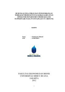 MULYATI, ENDANG SRI (2012) HUBUNGAN PELATIHAN DAN PENGEMBANGAN TERHADAP PRODUKTIVITAS KERJA KARYAWAN OPERATOR DEPARTEMEN PRODUKSI LINE TUPPERWARE PADA PT DYNAPLAST IV CIBITUNG. S1 thesis, Universitas Mercu Buana Jakarta.
