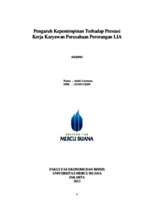 LESMANA, ANDRI (2012) PENGARUH KEPEMIMPINAN TERHADAP PRESTASI KERJA KARYAWAN PERUSAHAAN PERORANGAN LIA. S1 thesis, Universitas Mercu Buana Jakarta.