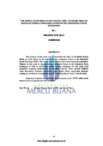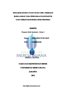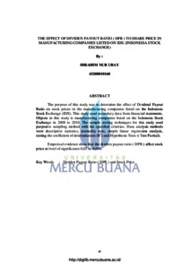 UBAY, IBRAHIM NUR (2012) PENGARUH DIVIDEN PAYOUT RATIO ( DPR ) TERHADAP HARGA SAHAM PADA PERUSAHAAN MANUFAKTUR YANG TERDAFTAR DI BURSA EFEK INDONESIA. S1 thesis, Universitas Mercu Buana Jakarta.
