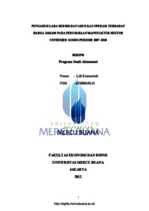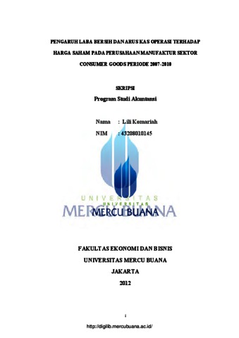 KOMARIAH, LILI (2012) PENGARUH LABA BERSIH DAN ARUS KAS OPERASI TERHADAP HARGA SAHAM PADA PERUSAHAAN MANUFAKTUR SEKTOR CONSUMER GOODS PERIODE 2007-2010. S1 thesis, Universitas Mercu Buana Jakarta.