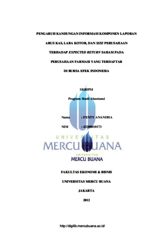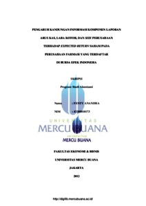 ANANDHA, FENTY (2012) PENGARUH KANDUNGAN INFORMASI KOMPONEN LAPORAN ARUS KAS, LABA KOTOR, DAN SIZE PERUSAHAAN TERHADAP EXPECTED RETURN SAHAM PADA PERUSAHAAN FARMASI YANG TERDAFTAR DI BURSA EFEK INDONESIA. S1 thesis, Universitas Mercu Buana Jakarta.