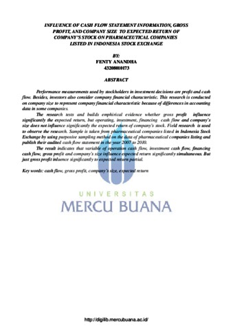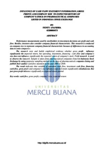 Performance measurements used by stockholders in investment decisions are profit and cash flow. Besides, investors also consider company financial characteristic. This research is conducted on company size to represent company financial characteristic because of differences in accounting data in some companies. The research tests and builds emphirical evidence whether gross profit influence significantly the expected return, but operating, investment, financing cash flow and company’s size does not influence significantly the expected return of company’s stock. Field research is used to observe the research. Sample is taken from pharmaceutical companies listed in Indonesia Stock Exchange by using purposive sampling method on the data of pharmaceutical companies listing and publish their audited cash flow statement in the year 2007 to 2010. The result indicates that variable of operation cash flow, investment cash flow, financing cash flow, gross profit and company’s size influence expected return significantly simultaneous. But just gross profit inluence significantly to expected return partial.