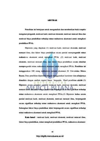 Penelitian ini bertujuan untuk menganalisis dan memberikan bukti empiris mengenai pengaruh, motivasi karir, motivasi ekonomi, motivasi mencari ilmu dan motivasi biaya pendidikan terhadap minat mahasiswa akuntansi untuk mengikuti pendidikan PPAk. Hipotesis yang diajukan (1) motivasi karir, motivasi ekonomi, motivasi mencari ilmu, dan faktor biaya pendidikan secara parsial mempengaruhi minat mahasiswa akuntansi untuk mengikuti PPAk ,(2) motivasi karir, motivasi ekonomi, motivasi mencari ilmu, dan faktor biaya pendidikan secara simultan mempengaruhi minat mahasiswa akuntansi untuk mengikuti PPAk. Penelitian ini menggunakan 100 orang mahasiswa jurusan akuntansi S1 Universitas Mercu Buana. Data penelitian diperoleh dengan menggunakan kuesioner dan selanjutnya dianalisis dengan analisis regresi linear berganda. Hasil penelitian adalah (1) Hipotesis secara simultan variabel motivasi karir, motivasi ekonomi, motivasi mencari ilmu dan faktor biaya pendidikan berpengaruh secara signifikan terhadap minat mahasiswa akuntansi untuk mengikuti PPAk,(2) Hipotesis kedua secara parsial motivasi karir, motivasi ekonomi, motivasi mencari ilmu, berpengaruh secara signifikan terhadap minat mahasiswa akuntansi untuk mengikuti PPAk. Sedangkan faktor biaya pendidikan tidak berpengaruh secara signifikan terhadap minat mahasiswa akuntansi untuk mengikuti PPAk.