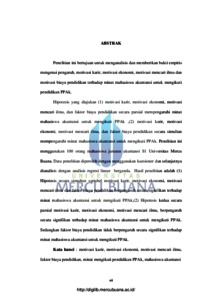 Uncontrolled Keywords: | motivasi karir, motivasi ekonomi, motivasi mencari ilmu, faktor biaya pendidikan, minat mengikuti pe |