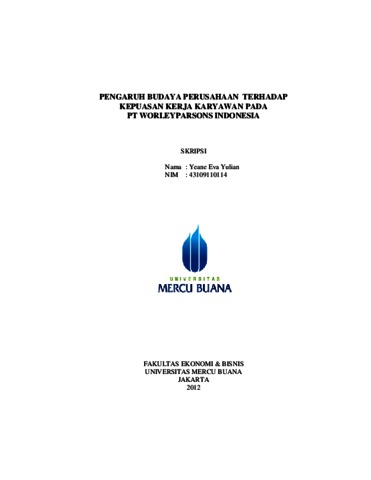 YULIAN, YEANE EVA (2012) PENGARUH BUDAYA PERUSAHAAN TERHADAP KEPUASAN KERJA KARYAWAN PADA PT WORLEYPARSONS INDONESIA. S1 thesis, Universitas Mercu Buana Jakarta.