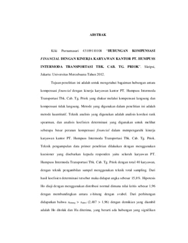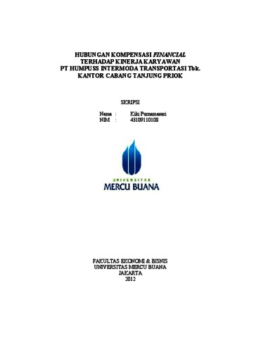 PURNAMASARI, KIKI (2012) HUBUNGAN KOMPENSASI FINANCIAL TERHADAP KINERJA KARYAWAN PT HUMPUSS INTERMODA TRANSPORTASI TBK. KANTOR CABANG TANJUNG PRIOK. S1 thesis, Universitas Mercu Buana Jakarta.