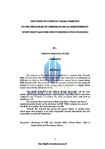 The purpose of this research was conducted to examine Size, Growth, ROA, Current Ratio and Debt to Equity Ratio that could affect the disclosure of CSR that are listed in the IDX LQ 45 consecutive annual reports issued during 2008 through 2009. This research using the causality method and also using the method of content analysis in the scoring index to determine a company doing social responsibility disclosure or not. The analysis technique used here is multiple regression with the least square differrent and hyphotesis test using t-statistic to examine partial regression coefficient and F-statistic to examine the mean of mutual effect with level of significance 5%. The research shows that Current Ratio and Debt to Equity ratio have a significant positive factor on the disclosure of CSR. While company size, growth and ROA do not affect the broad disclosure of CSR, Overall, this research has proven the Agency Theory in another form, which states that manager is not only responsible towards shareholder but also responsible towards all stakeholders.