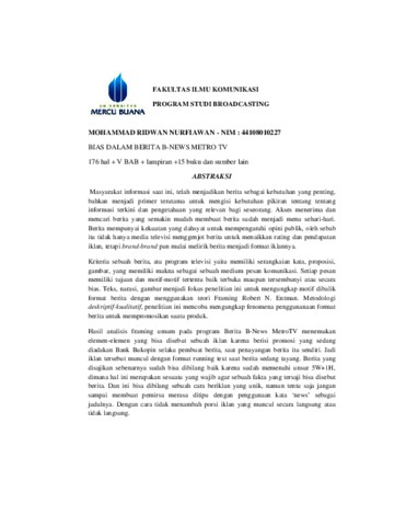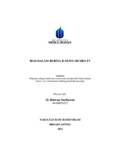 NURFIAWAN, MUHAMMAD RIDWAN (2012) BIAS DALAM BERITA B-NEWS METRO TV. S1 thesis, Universitas Mercu Buana Jakarta.