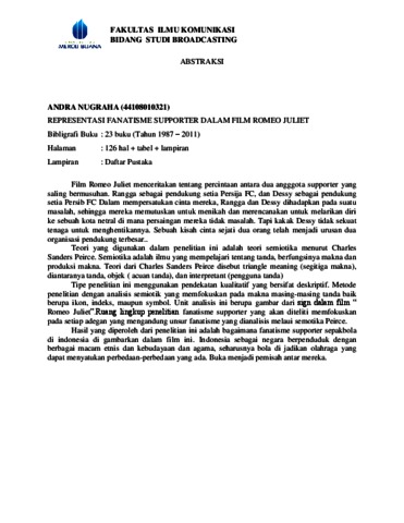 NUGRAHA, ANDRA (2012) REPRESENTASI FANATISME SUPPORTER DALAM FILM ROMEO JULIET. S1 thesis, Universitas Mercu Buana Jakarta.