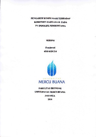 FAUZIAWATI, FAUZIAWATI (2012) PENGARUH KOMPENSASI TERHADAP KOMITMEN KARYAWAN PADA PT INDOLIFE PENSIONTAMA. S1 thesis, Universitas Mercu Buana Jakarta.