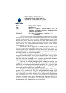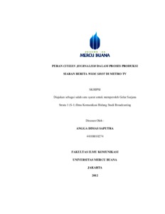 SAPUTRA, ANGGA DIMAS (2012) PERAN CITIZEN JOURNALISM DALAM PROSES PRODUKSI SIARAN BERITA WIDE SHOT DI METRO TV. S1 thesis, Universitas Mercu Buana Jakarta.