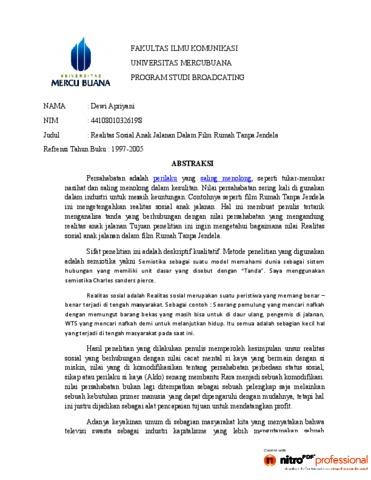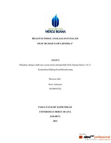 APRIYANI, DEWI (2012) REALITAS SOSIAL ANAK JALANAN DALAM FILM “RUMAH TANPA JENDELA”. S1 thesis, Universitas Mercu Buana Jakarta.