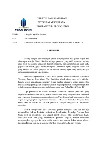 | Uncontrolled Keywords: | Penilaian Mahasiswa Terhadap Program Baru Galau Nite di Metro Tv |