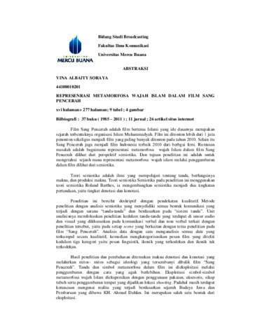 SORAYA, VINA ALBAITY (2012) REPRESENTASI METAMORFOSA WAJAH ISLAM DALAM FILM SANG PENCERAH. S1 thesis, Universitas Mercu Buana Jakarta.
