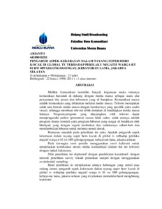 | Uncontrolled Keywords: | Pengaruh Aspek Kekerasan Dalam Tayangan Super Hero Kocak |