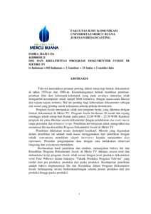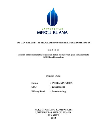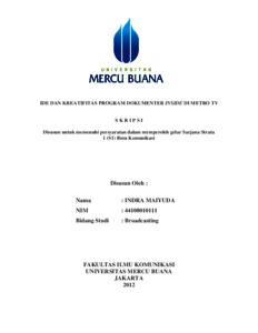 MAIYUDA, INDRA (2012) IDE DAN KREATIFITAS PROGRAM DOKUMENTER INSIDE DI METRO TV. S1 thesis, Universitas Mercu Buana Jakarta.