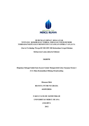 NUGRAHA, RIANITA PUTRI (2012) HUBUNGAN MINAT KHALAYAK TENTANG KEKERASAN VERBAL SEBAGAI UNSUR HUMOR TERHADAP KEPUASAN MENONTON TAYANGAN OPERA VAN JAVA (Survei Terhadap Warga RT 001 RW 010 Kelurahan Grogol Selatan Kebayoran Lama Jakarta Selatan). S1 thesis, Universitas Mercu Buana Jakarta.