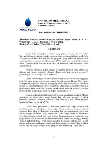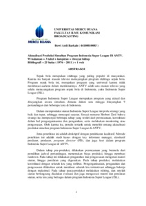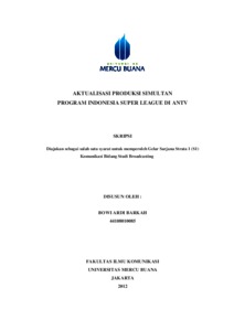BARAKAH, BOWI ARDI (2012) AKTUALISASI PRODUKSI SIMULTAN PROGRAM INDONESIA SUPER LEAGUE DI ANTV. S1 thesis, Universitas Mercu Buana Jakarta.
