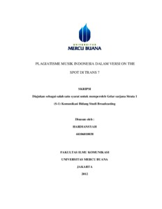 HARDIANSYAH, HARDIANSYAH (2012) PLAGIATISME MUSIK INDONESIA DALAM VERSI ON THE SPOT DI TRANS 7. S1 thesis, Universitas Mercu Buana Jakarta.