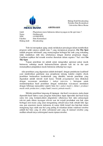 | Uncontrolled Keywords: | Plagiatisme Musik Indonesia Dalam Versi On The Spot di Trans 7 |