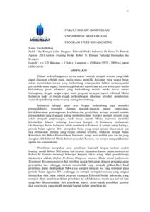 | Uncontrolled Keywords: | Isu Korupsi Dalam Program Editorial Media Indonesia di Metro TV Periode Agustus 2011 |