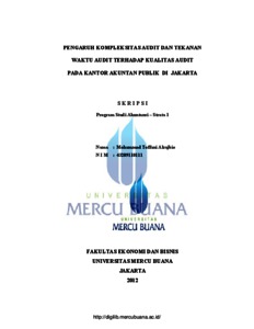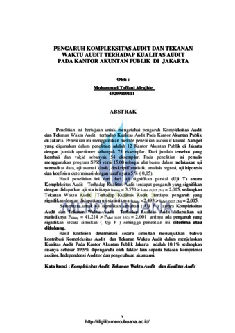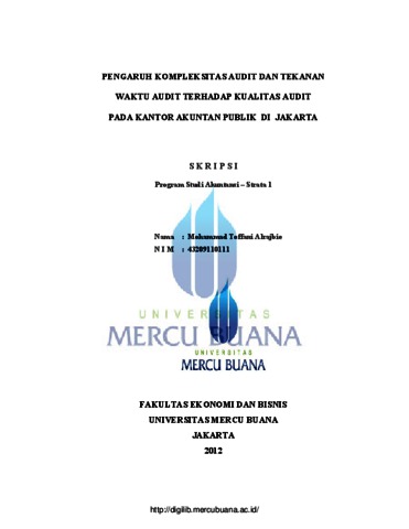 ALRAJBIE, MOHAMMAD TOFFANI (2012) PENGARUH KOMPLEKSITAS AUDIT DAN TEKANAN WAKTU AUDIT TERHADAP KUALITAS AUDIT PADA KANTOR AKUNTAN PUBLIK DI JAKARTA. S1 thesis, Universitas Mercu Buana Jakarta.