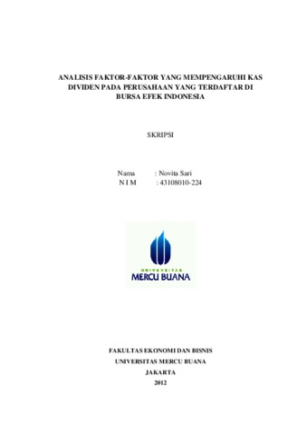 SARI, NOVITA (2012) ANALISIS FAKTOR-FAKTOR YANG MEMPENGARUHI KAS DIVIDEN PADA PERUSAHAAN YANG TERDAFTAR DI BURSA EFEK INDONESIA. S1 thesis, Universitas Mercu Buana Jakarta.