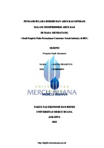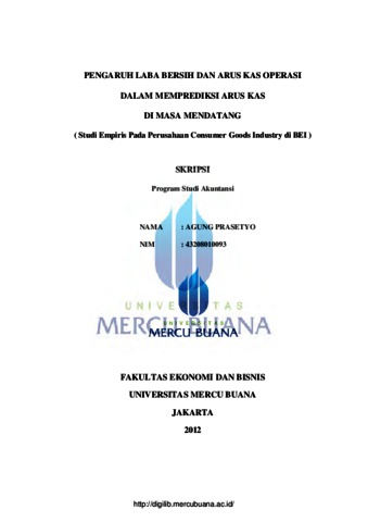 PRASETYO, AGUNG (2012) PENGARUH LABA BERSIH DAN ARUS KAS OPERASI DALAM MEMPREDIKSI ARUS KAS DI MASA MENDATANG (Studi Empiris Pada Perusahaan Consumer Goods Industry di BEI). S1 thesis, Universitas Mercu Buana Jakarta.