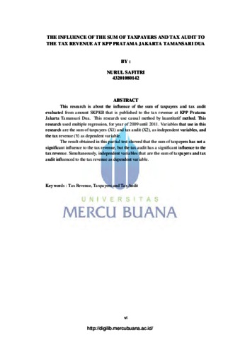 Penelitian ini bertujuan untuk mengetahui apakah penerimaan pajak penghasilan dikantor pelayanan pajak dipengaruhi oleh jumlah Wajib Pajak dan pemeriksaan pajak yang didefinisikan sebagai SKPKB yang diterbitkan tiap bulan. Data yang digunakan adalah data dari tahun 2009 sampai dengan tahun 2011. Penelitian ini menggunakan metode penelitian kausal dengan regresi linear berganda, dan data kuantitatif dengan data skunder berupa Penerimaan Pajak Penghasilan, Jumlah Wajib Pajak dan Pemeriksaan berupa SKPKB yang diambil KPP Tamansari Dua. Hasil penelitian yang diperoleh dalam pengujian secara parsial adalah jumlah wajib pajak tidak pengaruh secara signifikan terhadap penerimaan pajak penghasilan, namun pemeriksaan pajak mempunyai pengaruh yang signifikan terhadap penerimaan pajak penghasilan. Secara simultan variabel independen yaitu jumlah wajib pajak dan pemeriksaan pajak berpengaruh terhadap variabel independen yaitu penerimaan pajak penghasilan. Kata kunci : Penerimaan Pajak Penghasilan, Jumlah Wajib Pajak, Pemeriksaan Pajak.
