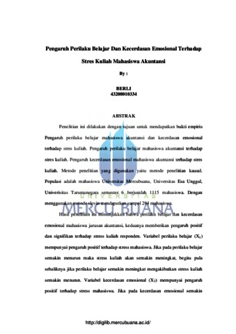 BERLI, BERLI (2012) PENGARUH PERILAKU BELAJAR DAN KECERDASAN EMOSIONAL TERHADAP STRES KULIAH MAHASISWA AKUNTANSI. S1 thesis, Universitas Mercu Buana Jakarta.