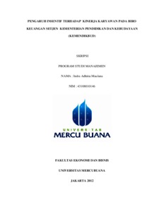 MAULANA, INDRA ADHITIA (2012) PENGARUH INSENTIF TERHADAP KINERJA KARYAWAN PADA BIRO KEUANGAN SETJEN KEMENTERIAN PENDIDIKAN DAN KEBUDAYAAN (KEMENDIKBUD). S1 thesis, Universitas Mercu Buana Jakarta.
