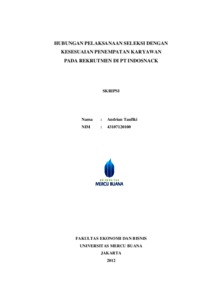 TAUFIKI, ANDRIAN (2012) HUBUNGAN PELAKSANAAN SELEKSI DENGAN KESESUAIAN PENEMPATAN KARYAWAN PADA REKRUTMEN DI PT INDOSNACK. S1 thesis, Universitas Mercu Buana Jakarta.