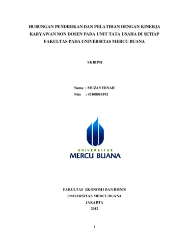 MUZAYYENAH, MUZAYYENAH (2012) HUBUNGAN PENDIDIKAN DAN PELATIHAN DENGAN KINERJA KARYAWAN NON DOSEN PADA UNIT TATA USAHA DI SETIAP FAKULTAS PADA UNIVERSITAS MERCU BUANA. S1 thesis, Universitas Mercu Buana Jakarta.