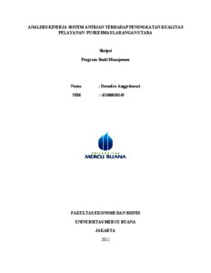 | Uncontrolled Keywords: | Analisa kinerja , sisitem Antrian. |