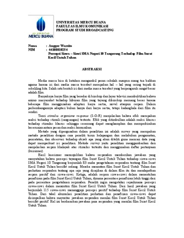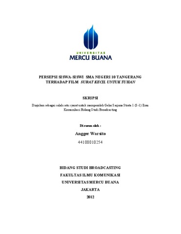 | Uncontrolled Keywords: | Persepsi Siswa-Siswi SMA Negeri 10 Tangerang Terhadap Film Surat Kecil Untuk Tuhan |