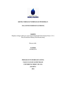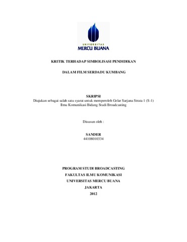 SANDER, SANDER (2012) KRITIK TERHADAP SIMBOLISASI PENDIDIKAN DALAM FILM SERDADU KUMBANG. S1 thesis, Universitas Mercu Buana Jakarta.