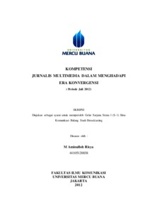 RISYA, M. AMINULLOH (2012) KOMPETENSI JURNALIS MULTIMEDIA DALAM MENGHADAPI ERA KONVERGENSI (Periode Juli 2012). S1 thesis, Universitas Mercu Buana Jakarta.