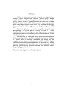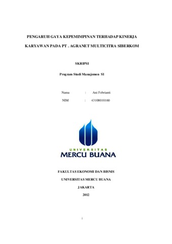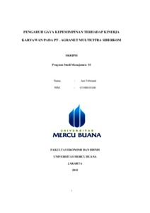 FEBRIANTI, ANI (2012) PENGARUH GAYA KEPEMIMPINAN TERHADAP KINERJA KARYAWAN PADA PT . AGRANET MULTICITRA SIBERKOM. S1 thesis, Universitas Mercu Buana Jakarta.