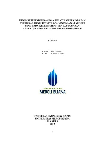 FITRIASARI, EKA (2012) PENGARUH PENDIDIKAN DAN PELATIHAN PRAJABATAN TERHADAP PRODUKTIVITAS CALON PEGAWAI NEGERI SIPIL PADA KEMENTERIAN PENDAYAGUNAAN APARATUR NEGARA DAN REFORMASI BIROKRASI. S1 thesis, Universitas Mercu Buana Jakarta.