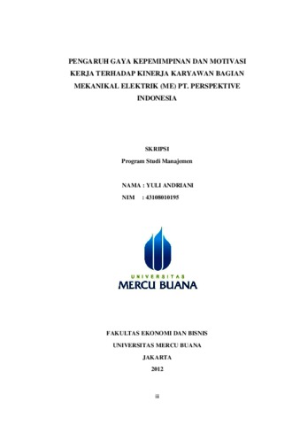 ANDRIANI, YULI (2012) PENGARUH GAYA KEPEMIMPINAN DAN MOTIVASI KERJA TERHADAP KINERJA KARYAWAN BAGIAN MEKANIKAL ELEKTRIK (ME) PT. PERSPEKTIVE INDONESIA. S1 thesis, Universitas Mercu Buana Jakarta.
