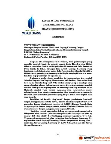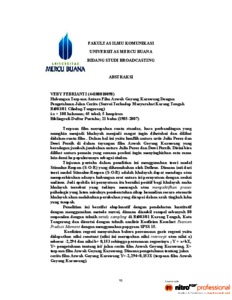 | Uncontrolled Keywords: | Hubungan Antara Terpaan Film Arwah Goyang Karawang dengan Pengetahuan Jalan Cerita (Survei Terhadap |