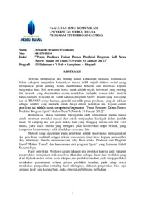 | Uncontrolled Keywords: | Peran Produser Dalam Proses Produksi Program Soft News Sport 7 Malam di TRANS 7 |