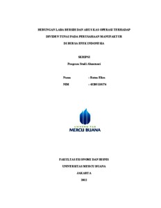 ELIZA, RATNA (2012) HUBUNGAN LABA BERSIH DAN ARUS KAS OPERASI TERHADAP DIVIDEN TUNAI PADA PERUSAHAAN MANUFAKTUR DI BURSA EFEK INDONESIA. S1 thesis, Universitas Mercu Buana Jakarta.