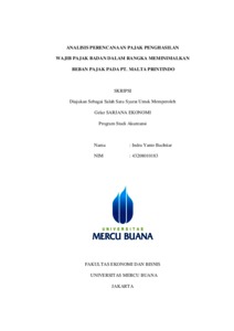 BACHTIAR, INDRA YANTO (2012) ANALISIS PERENCANAAN PAJAK PENGHASILAN WAJIB PAJAK BADAN DALAM RANGKA MEMINIMALKAN BEBAN PAJAK PADA PT. MALTA PRINTINDO. S1 thesis, Universitas Mercu Buana Jakarta.