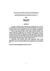 SATMOKO, NOFAN (2012) EVALUASI ATAS PERANCANGAN DAN PENERAPAN SISTEM PENGENDALIAN INTERNAL PADA PT. X. S1 thesis, Universitas Mercu Buana Jakarta.